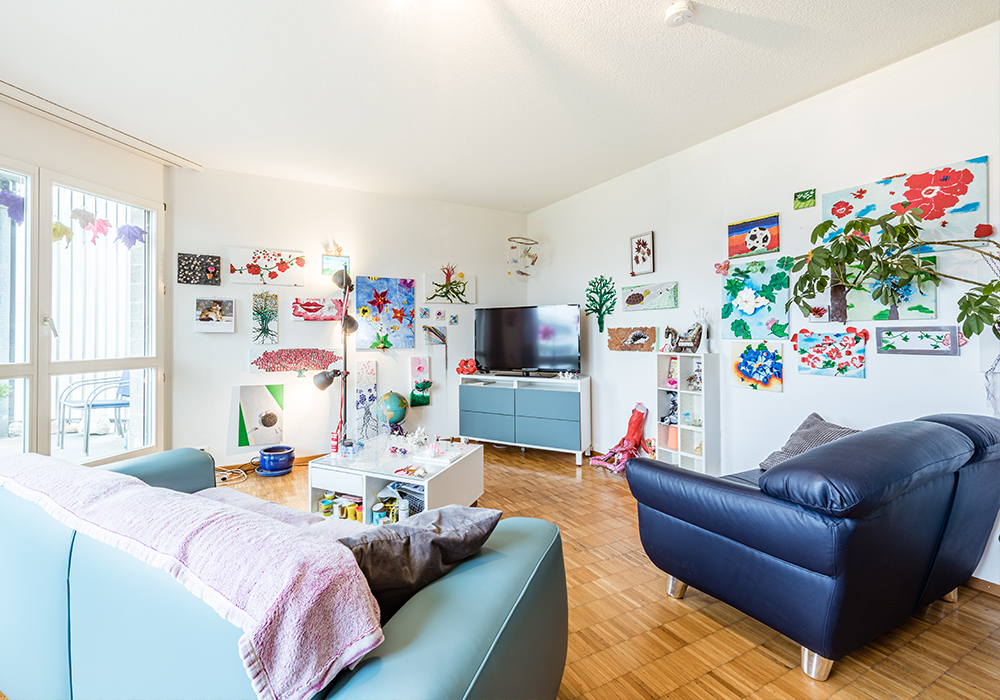 Sie haben in jeder Wohngemeinschaft der Schmelzi Ihr eigenes Zimmer. Und je nachdem auch ein zusätzliches Wohnzimmer, das Sie sich mit einer oder zwei Personen teilen.