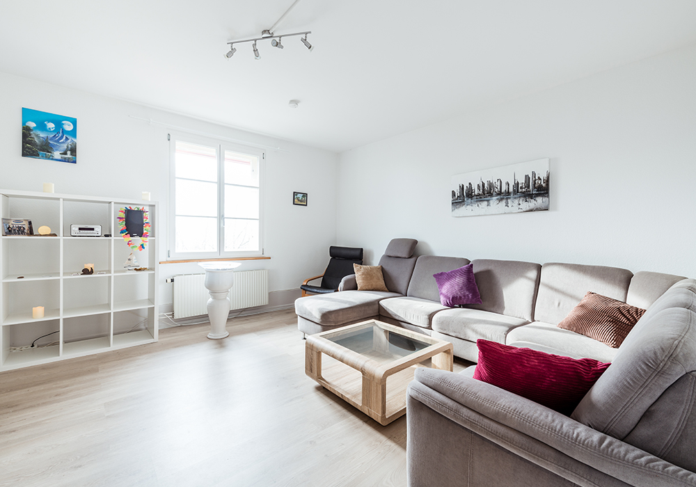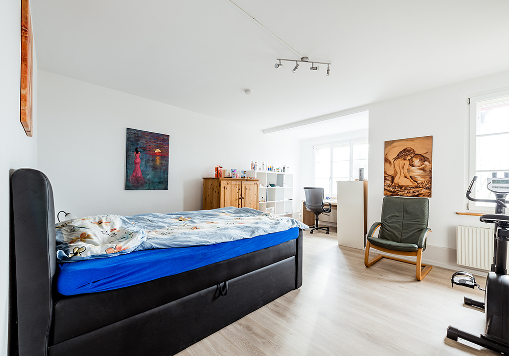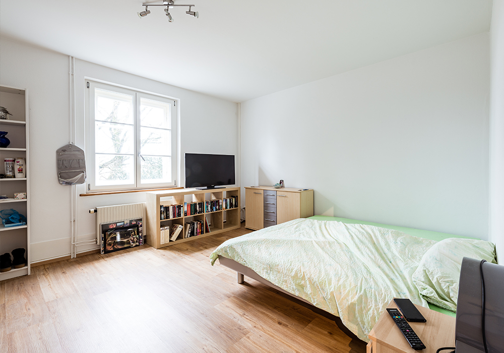 Sie haben in jeder Wohngemeinschaft der Schmelzi Ihr eigenes Zimmer. Und je nachdem auch ein zusätzliches Wohnzimmer, das Sie sich mit einer oder zwei Personen teilen.